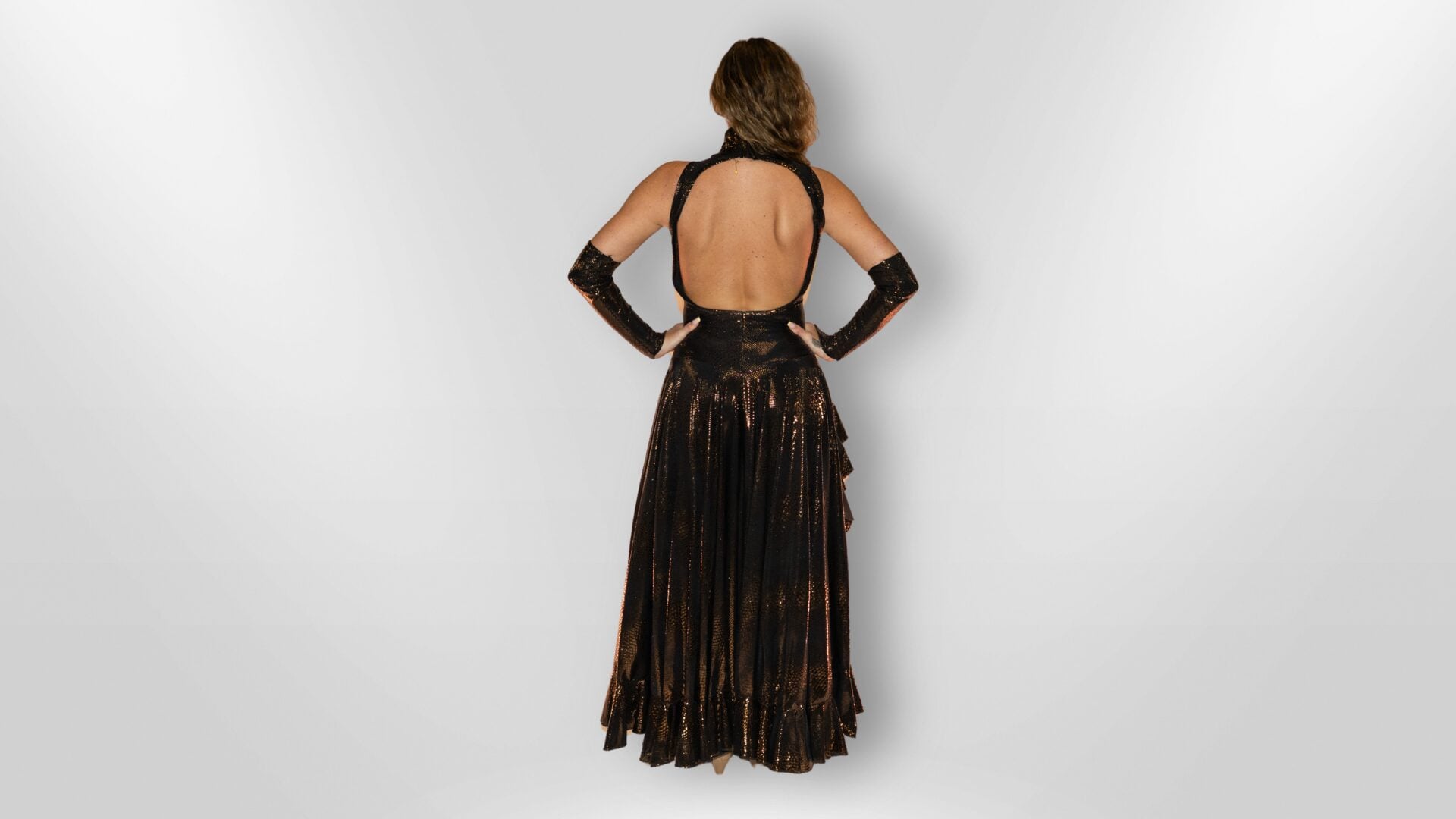 Amanda J Thompson OBE | Luxury Designer Bronze Snake-Skin Dress