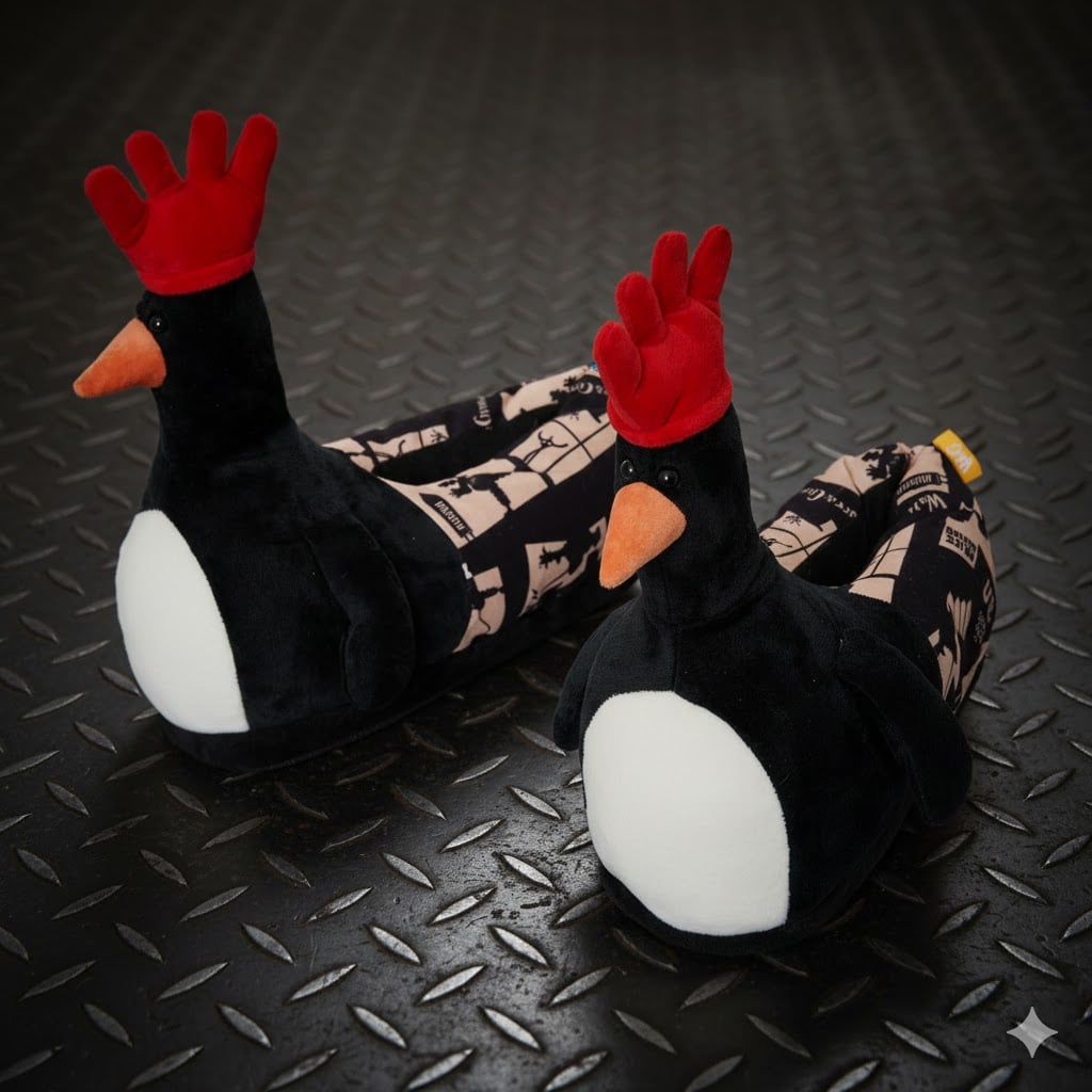 Slip into the soft embrace of Feathers McGraw himself with Coddies’ new plush slippers, designed to capture the essence of Aardman’s criminal mastermind. They fit like a glove – not unlike the red rubber glove perched atop Feathers’ head – a disguise so brilliant in its simplicity that it once outwitted Wallace and even the local law enforcement.