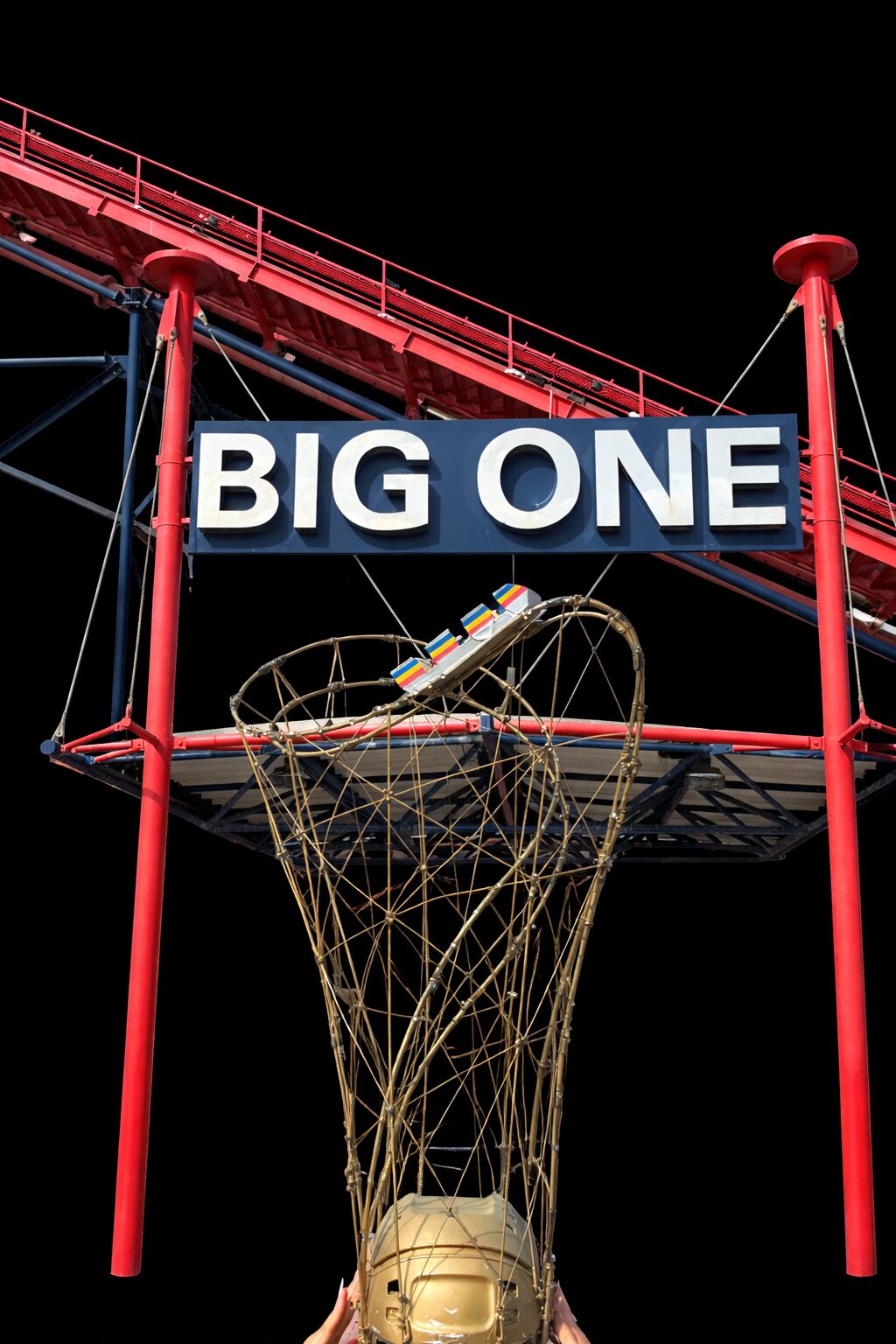 Own a true piece of ride history with this extraordinary headpiece, created to celebrate the iconic opening of The Big One. This striking, handcrafted display captures the essence of the world-famous coaster, featuring an authentic original Big One train element at its crown.