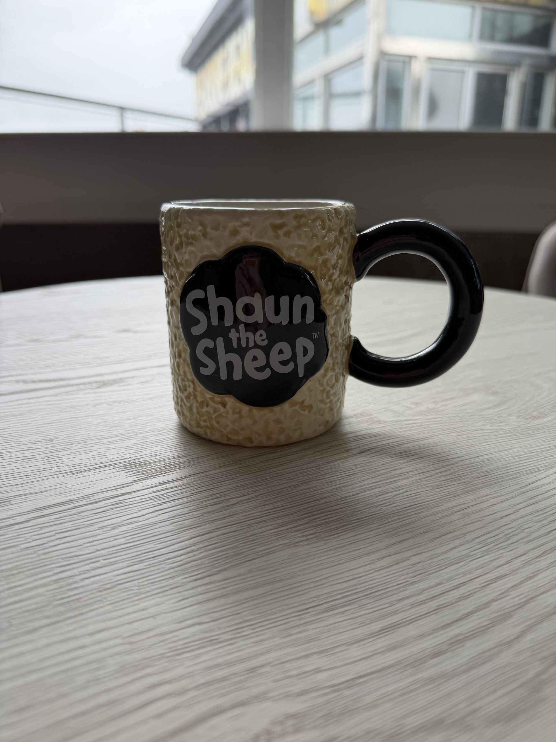 Shaun the Sheep ceramic shaped mug with sheep wool style ceramic feel and Shaun the sheep’s face on the front
